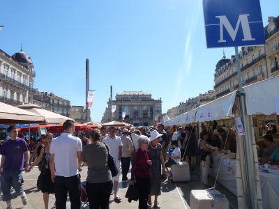 Beaucoup de monde dans les allées de la Comédie du Livre qui se déroule ce week-end à Montpellier et qui tiendra encore tribune ce dimanche sur la place de la Comédie. Une rencontre annuelle qui s’est transformée en un incontournable des événements du printemps à Montpellier. Par ce jour de grand beau temps, nombreux ont été les passionnés de livre et d’auteurs à se presser autour des stands pour aller à la rencontre des écrivains.