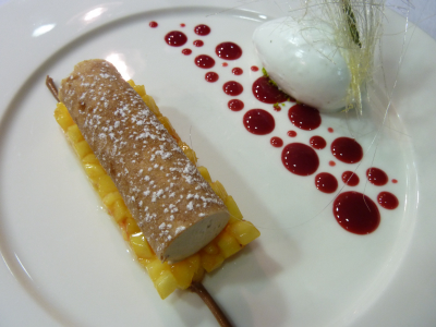 La pièce de veau rôtie, poitrine de veau confite et foie gras en croustillant,