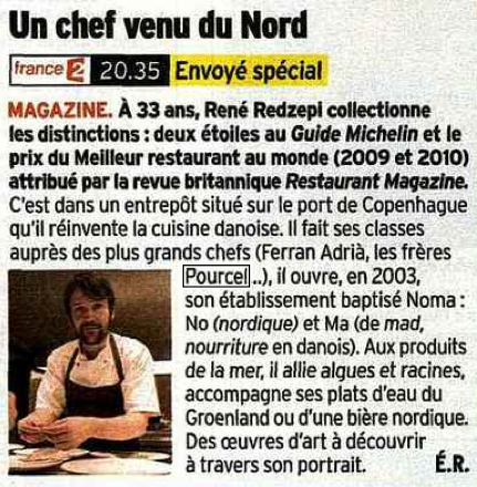 Découvrez le Chef René Redzepi sur France2 dans le magazine » Envoyé Spécial » jeudi 8 septembre