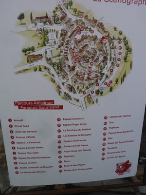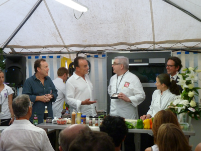 Les rues de Mougins se sont transformées pour trois jours en parcours initiatique culinaire, artistique et gourmand que promettait aussi le plan de la ville affiché un peu partout dans le village. Et effectivement, on pouvait découvrir sur toutes les placettes, des petites tentes installées où les chefs donnaient de leurs temps pour cuisiner devant un public passionné de recettes et intéressé de découvrir le savoir-faire des chefs.