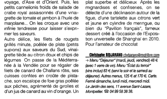 Un monde de saveurs au Jardin des Sens sur Midi Libre