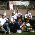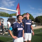 Jérôme Alonzo et le cuisinier-footballeur pour l’équipe Ducasse, vainqueur du tir au but.