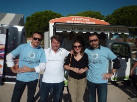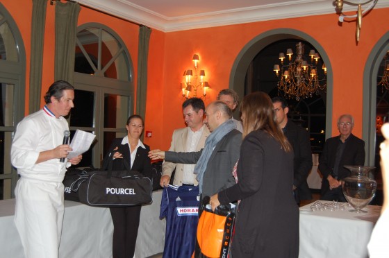 Remise du sac contenant les maillots de l’équipe Pourcel du Jardin des Sens,