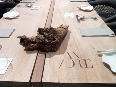 Une multitude de petites pièces composent ce restaurant sur trois étages, dans chacune les éléments choisis par André et son épouse vous ramènent à l’essentiel, la pierre, le bois, le verre, le fer…. c’est pur et raffiné à la fois.
