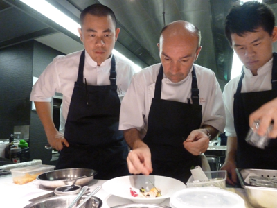 Les chefs Laurent Pourcel et André Chiang se sont retrouvés aux fourneaux comme au temps où le jeune commis apprenait la cuisine française auprès des jumeaux Pourcel.