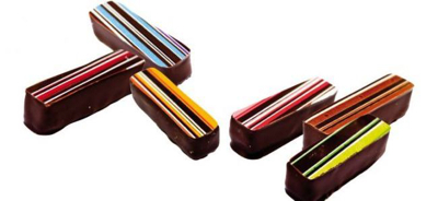 De forme longilignes, les chocolats d’Anne-Sophie Pic et Sadaharu Aoki s’appuient sur des accords chers à la cuisine des deux professionnels. Sous l’idée de la chef aux trois étoiles, le cacao se marie à la cire d’abeille, à la bière, à la camomille, au citron jaune, au thé fumé ou encore à l’anis vert et à la vanille. Le pâtissier japonais a, quant à lui, mis à l’honneur la verveine, le goût du mojito et allié l’intensité du poivre sanchô à la douceur du marron.