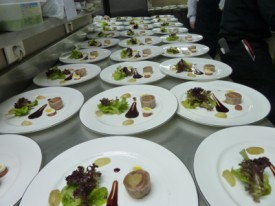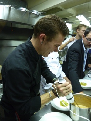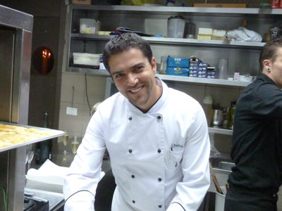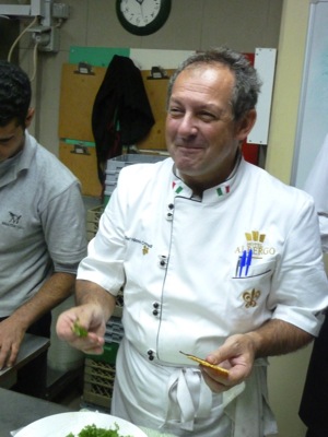 En cuisine, tous s’activent pour servir la bonne centaine de couverts qui étaient réservés ce soir-là. Une petite visite de Dominique Dorel du restaurant Yazhou situé à proximité de l’Albergo, Joris, sous-chef au Jardin des Sens à Montpellier accompagné du chef de l’Albergo, et ci-dessus Charbel un très bon chef de Beyrouth venu porter main forte à l’équipe.