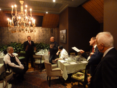 Après le dîner, c’est au chef de faire le tour de table pour saluer les convives ayant participé au dîner, l’occasion de rencontrer quelques fidèles du festival gastronomique et des personnalités locales, puis d’échanger quelques mots avec certaines connaissances, le tout dans une ambiance très conviviale, accompagné par Jean Naltchayan.