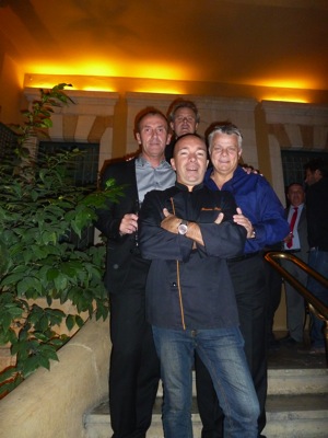 Après le champagne, c’est forcément les photos avec les chefs qui sont traditionnelles. Ici, autour de Jacques Pourcel qui réalisait le dîner ce soir-là, c’était Jean-Jacques Nouguier, Jean-Christophe Lebascle et Patrice Hardy. En tout, ce sont 7 chefs qui se sont produits un soir, chacun proposant son menu.