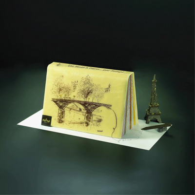 Lenôtre a collaboré avec l’illustrateur français Sempé pour façonner la bûche de Noël 2011. Le papa du Petit Nicolas a imaginé un livre gourmand dont la couverture fait honneur à Paris. « Un Noël à Paris… par Sempé« . Tel est le titre du livre gourmand dessiné par Sempé pour la maison Lenôtre qui a fait appel au dessinateur pour concevoir sa bûche de Noël. Posé, légèrement ouvert, sur la tranche côté pages, le livre est réalisé avec une dacquoise moelleuse aux amandes et agrémenté d’une gelée et d’un confit de framboise. Le gâteau craque sous la dent grâce à un croustillant praliné, et fond sur la langue avec un crémeux chocolat Alto El Sol du Pérou et une mousse au chocolat noir intense. Disponible du 17 au 24 décembre au prix de 125 € (pour 8 à 10 personnes).