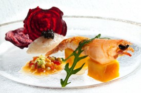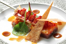 L’émincé de homard sur une fine gelée de clémentines au Sichuan,