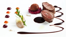 La noisette de chevreuil rôtie, crème de châtaignes, croquette de son civet,
