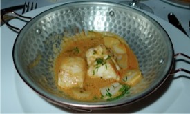 Cassolette de homard et Saint-Jacques à la truffe noire.