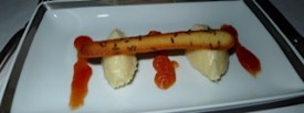 Cochon caramélisé, ratatouille, noix de coco et citron.