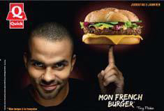 On peut désormais manger du Tony Parker, depuis hier mardi, le « French Burger « est proposé chez Quick. La Pub de ce sandwich tourne sur les écrans pour la fin de l’année et la reprise de la saison NBA. On voit Tony Parker rentrer des Etats-Unis et sortir du cockpit d’un avion pour aller goûter son sandwich. Ce film est diffusé du 29 novembre au 17 décembre sur chaînes 6 chaînes (TF1, M6, W9, NRJ12, MTV, France 4) accompagné aussi d’une déclinaison en affichage 4×3 sur le réseau JC Decaux. Le partenariat s’étendra sur 4 ans entre le meneur de jeu des San Antonio Spurs et Quick et servira également de support à une campagne de recrutement de la marque. Le French Burger by Tony Parker, sera décliné en trois recettes avec une sauce Roquefort, Moutarde à l’ancienne ou Piment d’Espelette. Quick a découpé la France en trois région d’élevage, on retrouvera donc un steak haché de race 100% française provenant de Viande Charolaise, Normande et Limousine. Autre nouveauté, le mélange de salades composé de chicorée rouge, jeune pousse d’épinards, pousse de laitue et un peu plus classique on retrouvera une tranche de fromage fondu du poivre noir concassé.