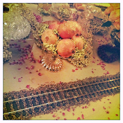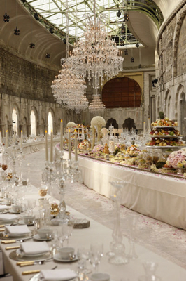 200 personnes triées sur le volet étaient invitées à ce banquet irréel, face à un buffet recouvert de plateaux en argent, chandeliers et bonbonnières en cristal, débordant de fruits, guirlandes de jasmin et de mille friandises.