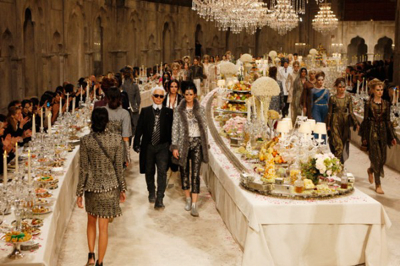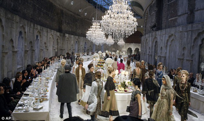 Bien évidemment, c’est à Paris, la capitale mondiale de la mode que s’est déroulé ce pantagruelesque buffet, dans un lieu totalement décalé choisi par le maestro de la haute couture, Karl Lagerfeld - une galerie en friche du Grand Palais – écrin éphémère d’une collection de prêt-à-porter “anti-morosité” servi en un luxueux palais de Maharadjah.
