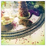 Sur la table centrale, interminable, majestueuse, circulait un train électrique argenté, transportant dans ses wagons des carafes à whisky et diffusant un sillage d’encens. Reposaient dessus également des minis caméras qui permettaient de filmer le défilé en double mouvement, celui des mannequins et celui de petit train.
