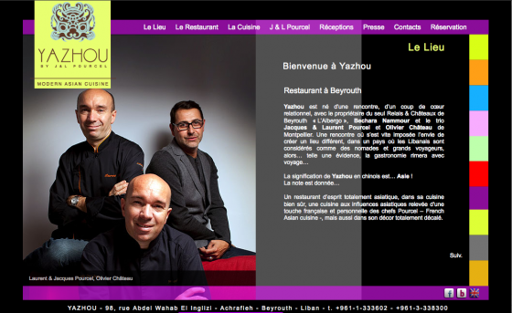 Toujours en collaboration avec Olivier Thieule de Fusioline (Créations graphiques et photographiques Web & Edition), nous vous dévoilons le tout nouveau site internet de la dernière enseigne des frères Pourcel, YAZHOU, située dans la capitale libanaise.