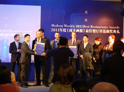 Pour l’édition de son guide Cuisine Map 2011-2012, parrainé par le Cognac Martell (qui fêtait à l’occasion ses 100 ans), et sous la direction de la présentatrice vedette de la chaîne TV-ICS, Ms Elisabeth Li Sizhe, la remise des Awards a eu lieu à The Gallery at 4F of Bund 18 (18 Zhongshan East Road à Shanghai), immeuble bien connu des frères Pourcel puisque c’est là-même qu’ils avaient posé leur première adresse à Shanghai, en 2006, avec le création de Sens & Bund & Bar Rouge.