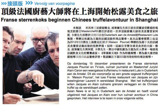 Quelques semaines avant les fêtes de fin d’année, nous vous avions présenté le déjeuner totalement à la truffe servi à Amsterdam pour une cinquantaine de journalistes et VIP. Il n’a fallu pas moins de deux mois pour réunir les différents et nombreux articles de presse qui avaient suivi. Nous vous en présentons quelques extraits…