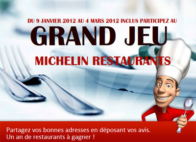 Nous en avions parlé sur le blog des frères Pourcel il y a quelques semaines, le Guide Michelin prépare son entrée sur la planète web dès le 13 février prochain et en version définitive le 27 février 2012. À cette occasion et pour créer le buzz autour de cet évènement dans le monde de la gastronomie, un grand jeu est lancé : le Jeu Restaurant Michelin.