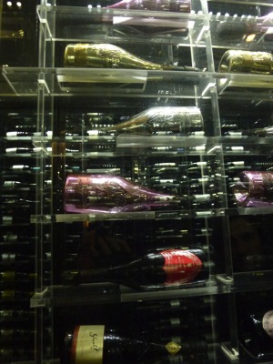 Au sixième étage, vous trouverez d’un côté le restaurant d’esprit asiatique fusion. Pour y pénétrer, vous traverserez une galerie de caves vitrées exposant de grands millésimes de Bordeaux avec notamment une collection impressionnante de Château Yquem et de Château Margaux. Pas vraiment utile, mais sont même exposés de vieux millésimes de Cognac, dont un est en vente à plus d’un million de yuans, que le Directeur de la restauration ne manquera pas de vous présenter. Désolé, trop cher pour nos porte-monnaie, dirions-nous !