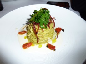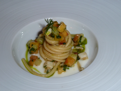 Le chef de Don Alfonso avec fraîcheur, netteté et surtout simplicité, sert les poissons des côtes du Maroc, huile d’olive, légumes bios et pâtes exceptionnelles qui sont les garants de l’authenticité de ce qui est ici servi.