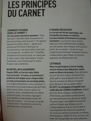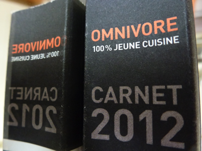 S’il y a un guide dans lequel on peut encore rêver d’être, c’est bien celui 100 % cuisine de Omnivore. Le Carnet 2012 vient de paraître, il a été lancé lors du premier Festival » Omnivore World Tour 2012 » à Paris, la semaine dernière dans le tout nouveau bâtiment entièrement rénové de La Mutualité.