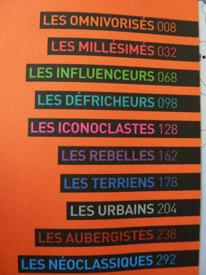 À l’intérieur, les tables sont classées par catégories, les Omnivorisés, les Millésimés, les Influenceurs, les Défricheurs, les Iconoclastes, les Rebelles, les Terriens, les Urbains, les Aubergistes et les Néoclassiques. Vous trouverez forcément la catégorie qui vous correspond.