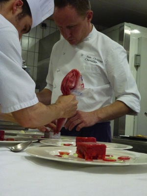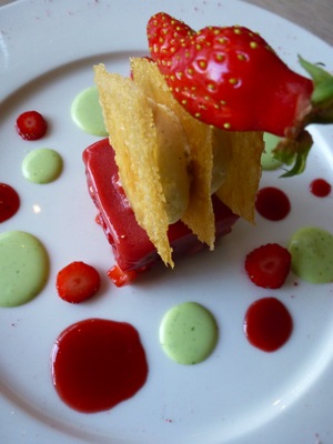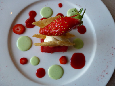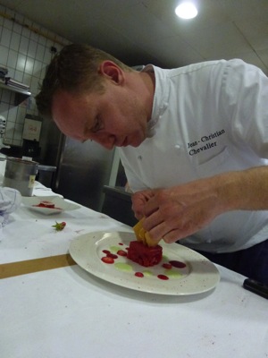 Déjà, les assiettes de desserts fusent, les menus et la carte se sont habillés de fraises gariguettes, le chef Jean-Christian Chevalier jouent avec les structures et tels un équilibriste et construits ses desserts en superposant les produits jusqu’à l’harmonie dans l’assiette.