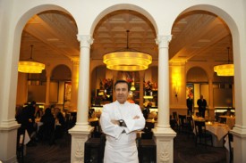 Au restaurant La Plume, superbe nouvel établissement à Washington DC, aux côtés du crabe du Maryland en risotto et du Tataki hamachi, la carte affiche du foie gras aux betteraves, un poisson à la grenobloise, du homard Thermidor, et un tian d’aubergines.