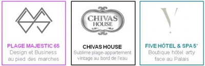 ADR Prod proposera les 3 lieux incontournables du festival de Cannes 2012, la Plage du Majestic 65, le Chivas House, Le Five Hôtel & Spa.