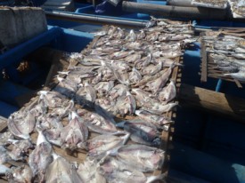 Aussitôt arrivés, les poissons sont rangés, nettoyés, emballés dans des caisses. Ce qui manque le plus c’est de la glace…