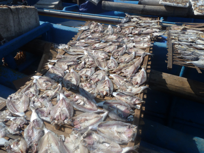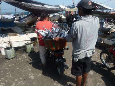 Les poissons partent chargés sur les mobylettes pour rejoindre des étals en ville.