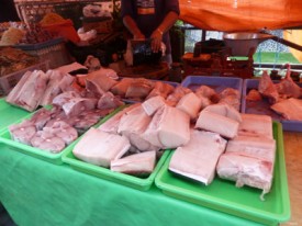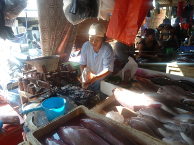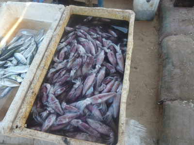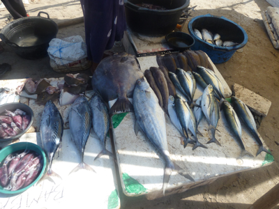 Une partie du marché est réservée aux restaurants qui proposent les poissons de la pêche du jour grillés au feu de bois, c’est très attirant de voir les poissons pratiquement sortis de l’eau et déjà sur le gril à attendre d’être consommés. Il est vrai que les circuits de distribution doivent être très courts, car ici la chaîne du froid est plutôt virtuelle.