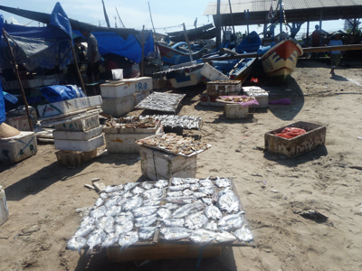 Les bateaux, pirogues et barques de pêcheurs sont disposés sur l’eau et sur le sable, la plage de Kedonganan c’est le port d’attache de beaucoup d’hommes de la mer. Tous les jours, le poisson frais arrive face au marché où il est vendu directement. C’est du pêcheur au consommateur, de nombreux restaurants se fournissent aussi sur place, les poissons sont exposés à même le soleil.