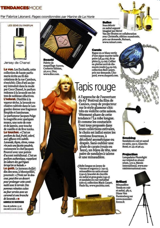 Repéré sur le magazine Le Point de la semaine en cours, sur les pages Tendances/Mode et dans la rubrique » Les Sens du Parfum « , le chef Jacques Pourcel à testé pour vous » Jersey de Chanel « , un parfum issue de la collection » Haute Parfumerie de Chanel « .