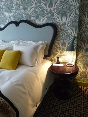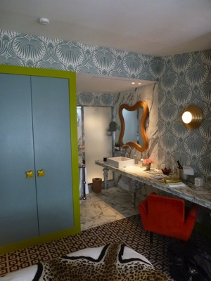 Tout juste 15 chambres, mais l’architecte designer India Mahdavi a fait un travail remarquable dans les étages de ce bâtiment traditionnel de ce quartier populaire et commerçant, entre Invalides et tour Eiffel. Iran-Égyptienne Inda Mahdavi a su apporter une personnalité unique à l’hôtel. Tout réside dans le détail, matériaux, tissus imprimés, clin d’œil à de nombreux univers qui donnent une âme exubérante à l’endroit.