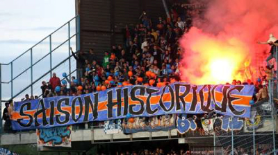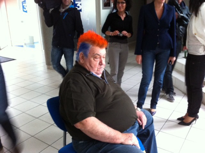 Chose promise, chose due… coiffure orange et bleue pour Nicollin pour fêter la victoire !