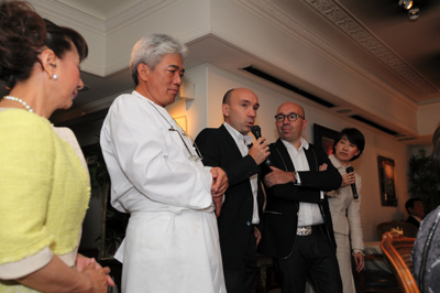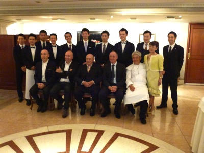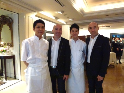 Si il y a bien un restaurant qui mérite le titre de » Grande Table Gastronomique Française » à Tokyo et dans le monde, c’est bien la table du Couple Hiramatsu, qui depuis trente ans régale les amateurs japonais de grande cuisine. 30 ans, c’est justement ce que les chefs Français Paul Bocuse, Marc Haeberlin et les Frères Pourcel fêtaient hier soir à Tokyo lors d’un dîner exceptionnel comme on en vois peu en ce moment.