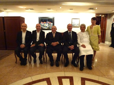 Avant le dîner, ce ce fut les temps des photos traditionnelles, les frères Pourcel Jacques & Laurent, Paul Bocuse, Marc Haeberlin, M & Me Hiramatsu. Une affiche exceptionnelle pour un dîner totalement dédié à la gastronomie et aux grands vins.