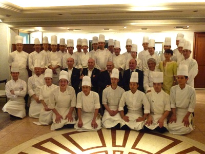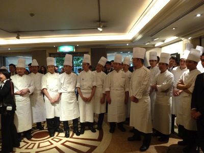 Les équipes de cuisine étaient très fières de pouvoir entourer les chef et notamment Paul Bocuse qui malgré ses 86 ans avait fait le voyage depuis Lyon pour fêter cet évènement. Paul Bocuse est très populaire au Japon, c’est un exemple pour beaucoup de jeunes talents en herbes.