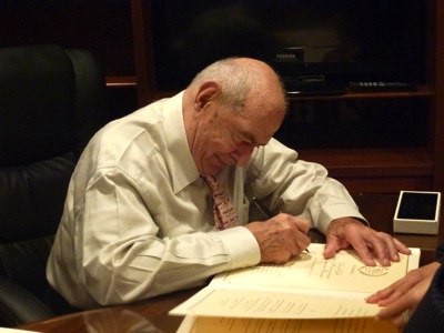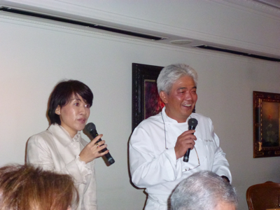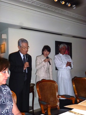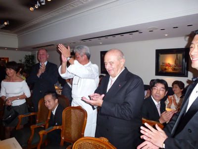 Paul Bocuse était visiblement très réjouis de parrainer ce dîner et de retrouver M. Hiramatsu pour qui il a beaucoup d’affection et de respect. Paul Bocuse signe la carte de 8 établissements au Japon, et de nombreuses pâtisseries et boutiques.