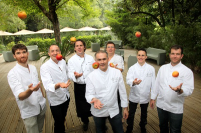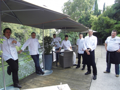 Première action collective officielle pour la nouvelle association « Cl’hub Chefs d’Oc« , lundi 10 septembre. Eric Cellier, le président (Maison de la Lozère), Pierre-Olivier Prouhèze (Prouhèze saveurs), Romain Salamone (Sensation), Patrick Guiltat (Castel Ronceray), Matthieu de Lauzun (De Lauzun), Jacques Mazerand (Le Mazerand) se sont retrouvés – à l’exception des frères Pourcel, empêchés – chez Charles Fontès, à La Réserve Rimbaud. Il s’agissait pour les chefs, de proposer un déjeuner réalisé avec des pommes Reine des Reinettes gourmandes, produites par la coopérative héraultaise Cofruid’Oc Méditerranée.