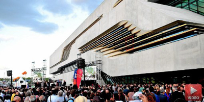 Inauguré par celui qui fut à l’origine du projet il y a plus de dix ans – et qui n’a eu de cesse de le défendre, jusqu’aux ultimes minutes précédant la découpe du ruban – et par celle qui l’a pensé et dessiné. Soit l’élu et l’architecte, le président du conseil général André Vezinhet et Zaha Hadid, la seconde ayant matérialisé en un vaisseau de béton, de verre et d’acier la volonté du premier : réunir en un seul lieu archives, office des sports et médiathèque, l’ensemble à une échelle départementale.