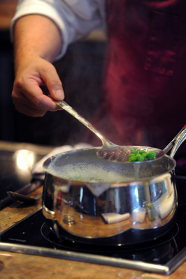 Alors, avant même des recettes, la cuisine c’est » le geste « , celui qui reproduit la technique, celui qui va transformer vos aliments en délices. Le » geste culinaire » c’est l’art de magnifier le plus simple des aliments pour qu’il transmette ses secrets…