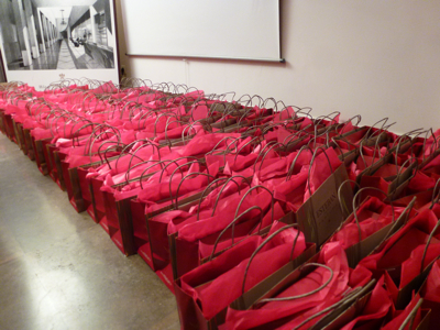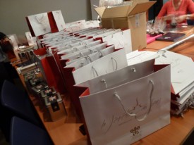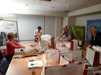 Pendant ce temps-là, dans les sous-sols du Jardin des Sens, Alexandra, Alice, Marie-Pierre et Isabelle préparent les sacs qui seront remis en fin de soirée à tous les participants, le thème de la soirée » Le Thé « …