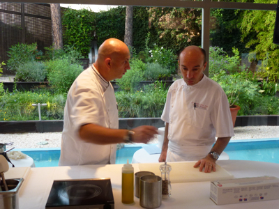 Effervescence au Jardin des Sens ce lundi soir, pour la première des deux soirées d’anniversaire de l’Atelier de Cuisine des frères Pourcel à Montpellier. Les petits plats étaient mis dans les grands pour fêter comme il se doit dix ans de cours de cuisine et de formation aux techniques culinaires pour les amateurs de petits plats préparés à la maison.