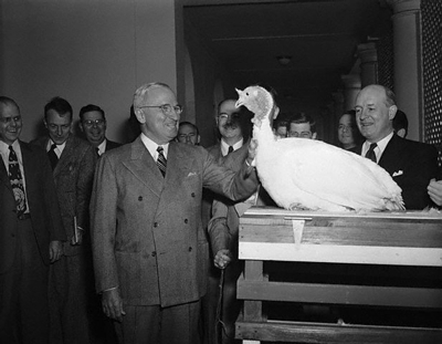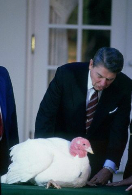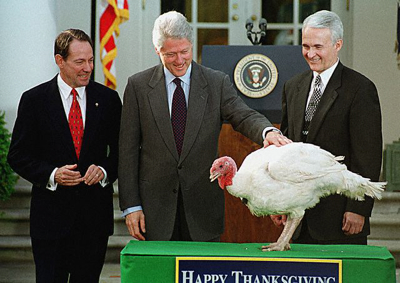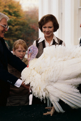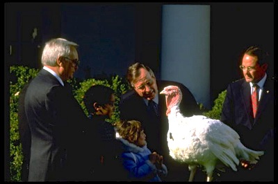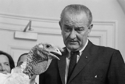 Alors que la population américaine a pris l’habitude de faire dorer sa dinde au four en y ajoutant de la farce et de succulents marrons, les chefs d’État eux, n’ont pas cette chance, sauf exceptions, avec Dwight D. Eisenhower et Lyndon Johnson qui n’ont pu s’empêcher pendant leur mandat présidentiel de se faire cuisiner l’animal qui leur avait été offert.